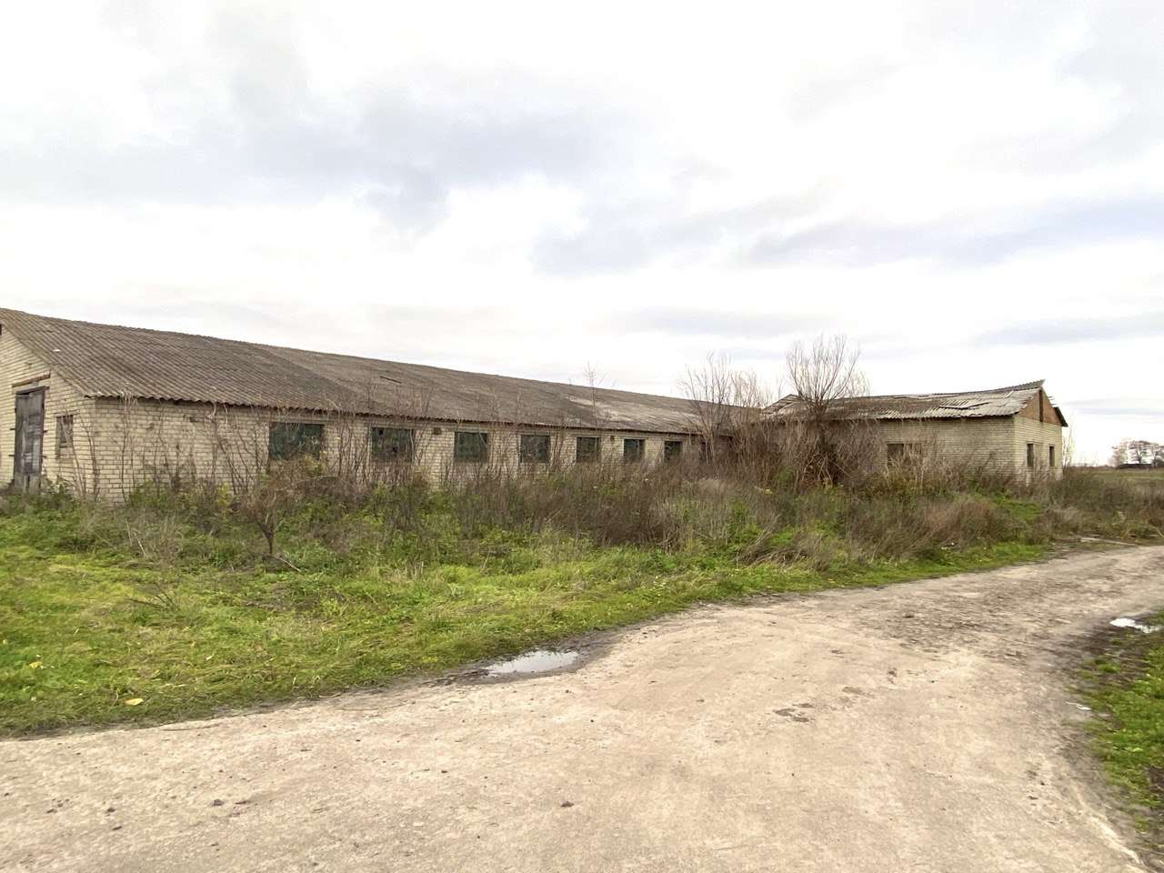 Будівля побудована з силікатної цегли,дах шифер,вікна скляні блоки.