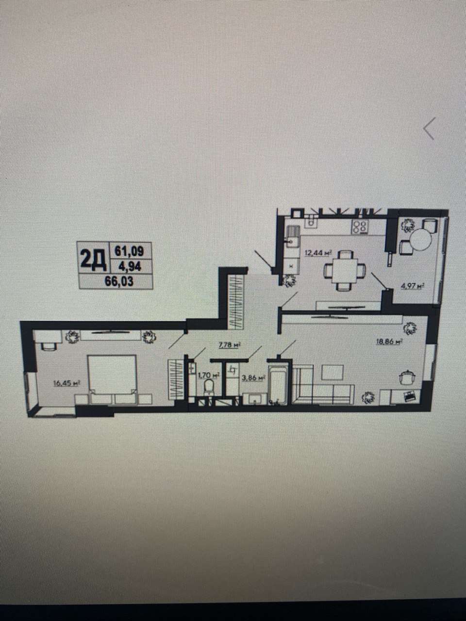 Площа 66,4 м2,кухня 12м2,балкон 4,5м2, кімната - 19 м2, кімната 17м2.