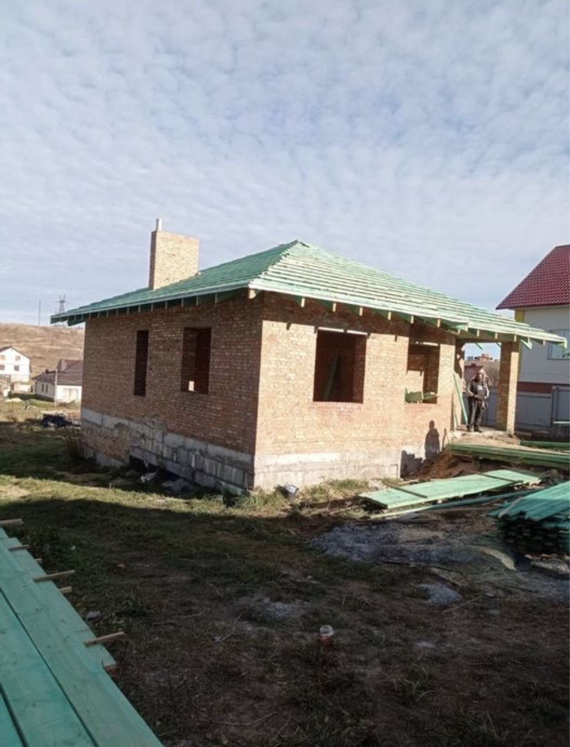 Станьте власником будинку з власною земельною ділянкою. Стіни з червоної цегли( півтори цеглини) , цокольний поверх з фундаментних блоків ДБК, зроблено утеплення з якісною гідроізоляцією, чорнова стяжка, перекриття залізобетонні плити, труба нержевійка для твердопаливного котла- каміна, заведено світло ( три фази), зональний лічильник , залиті бетонні сходи ( з першого в цоколь) , залита терасса- балкон ( 12 м²). , зроблено перекриття ( дерево) , у вартість входить дах ( робиться стропільна система, буде металочерепиця товщиною 0.5 виробництва Польщі 225 цинк, ) дерево усе оброблене вогнезахисним антисептиком. Стан об'єкта- будується. Після даху монтаж вікон, дверей (зовнішніх) - ВХОДИТЬ У ВАРТІСТЬ!