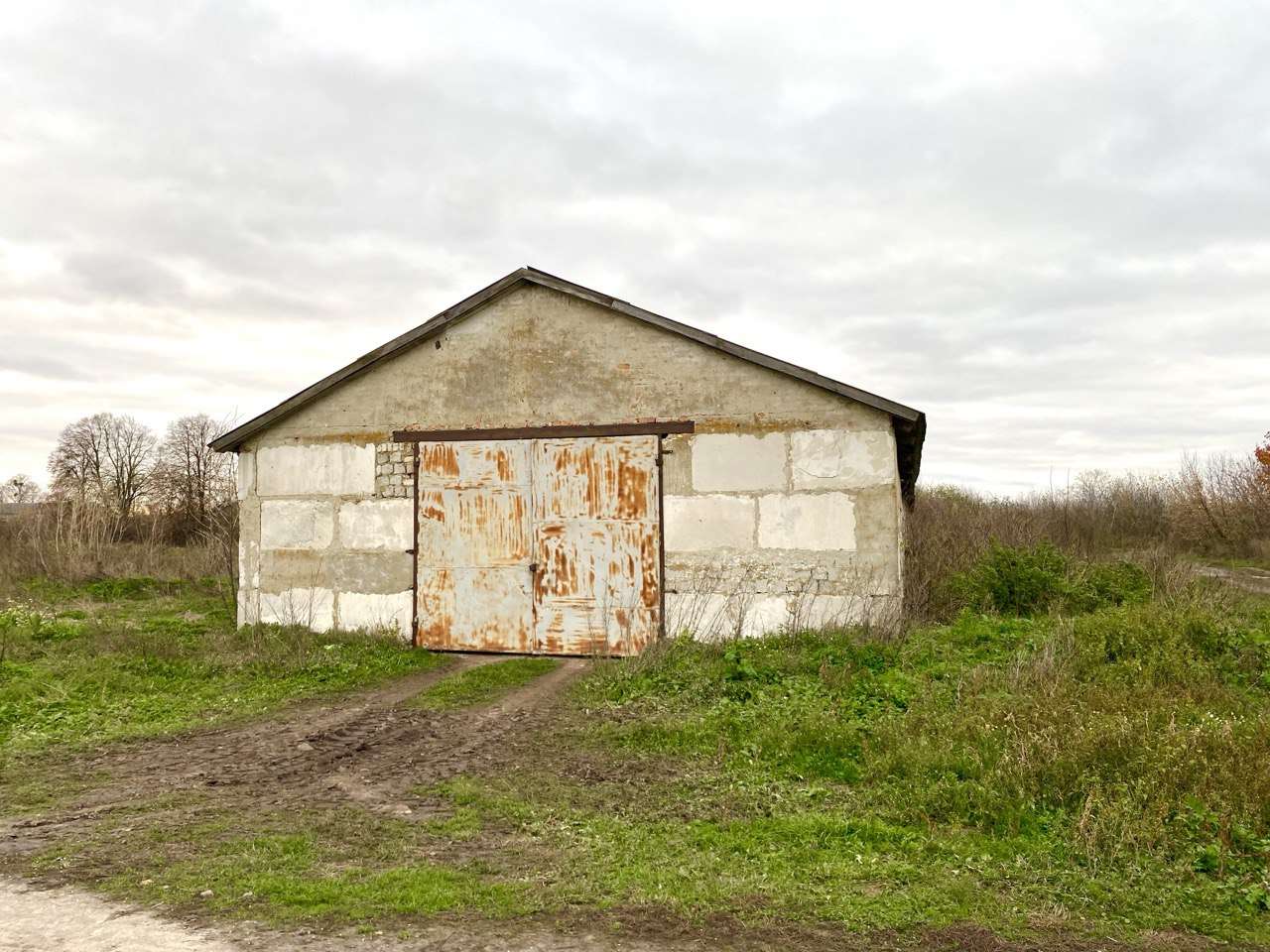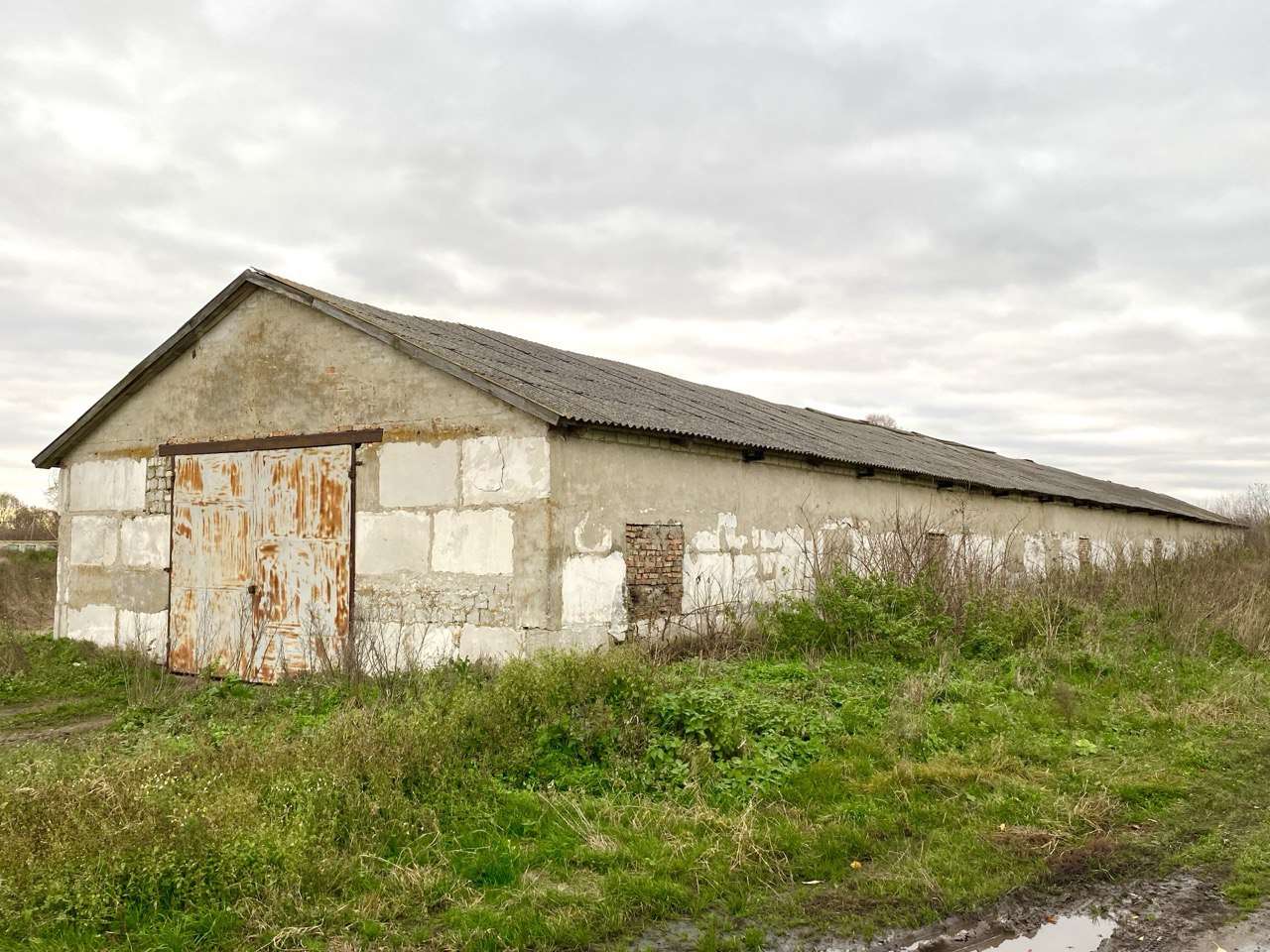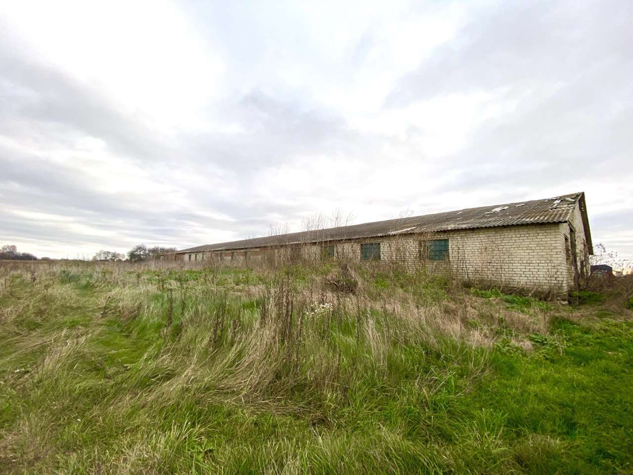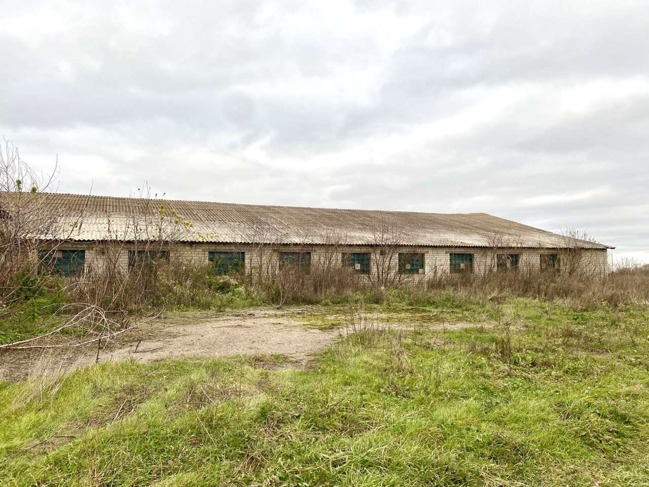 Будівля побудована з силікатної цегли,дах шифер,вікна скляні блоки.