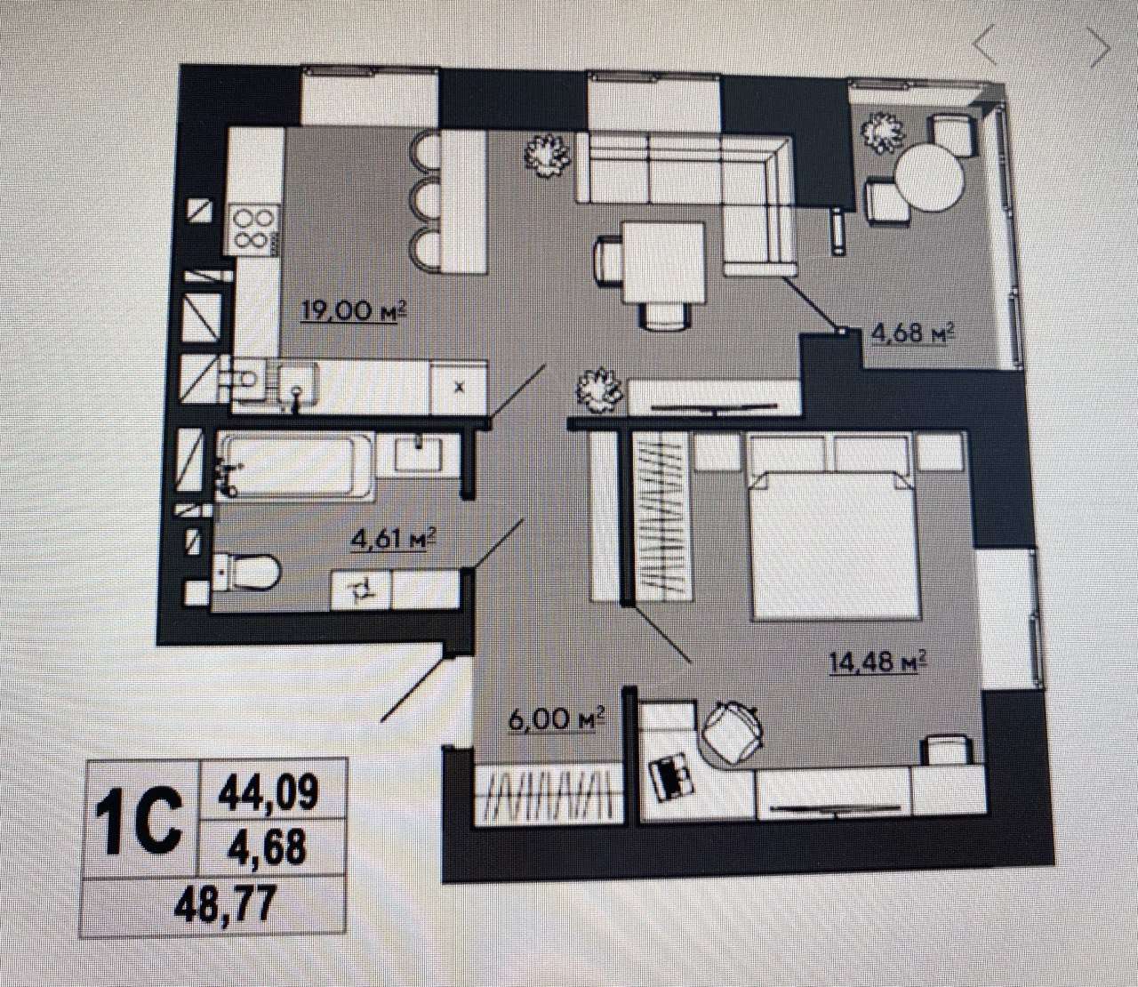 Площа 51 м2.