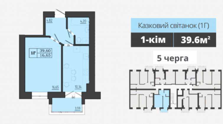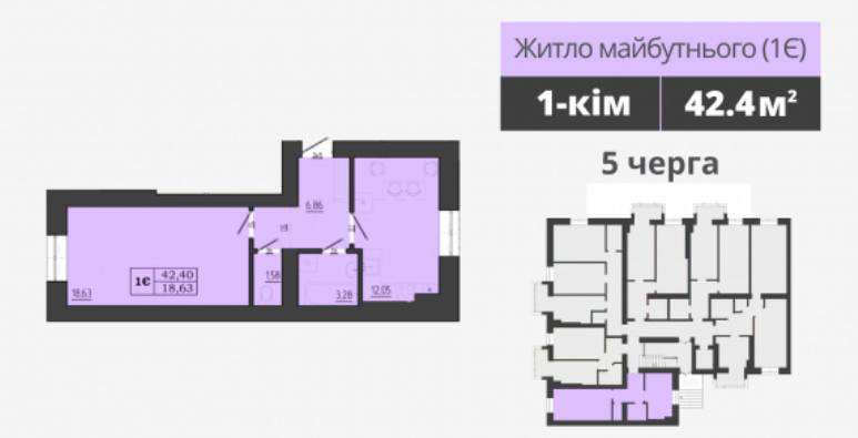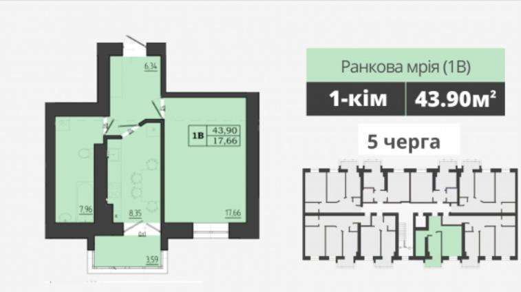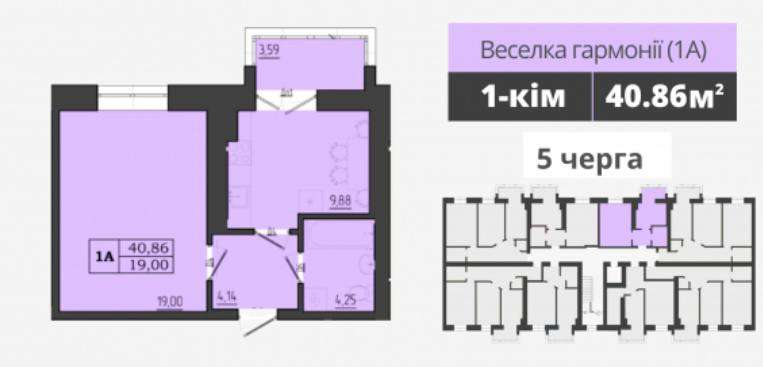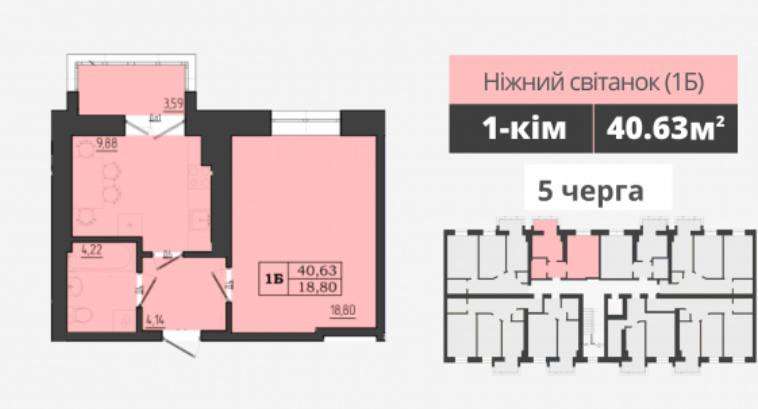 Площа 41,8 м2, кухня 14 м2,балкон лоджія
