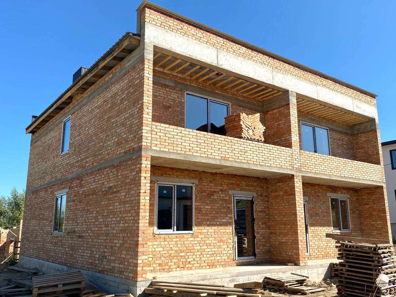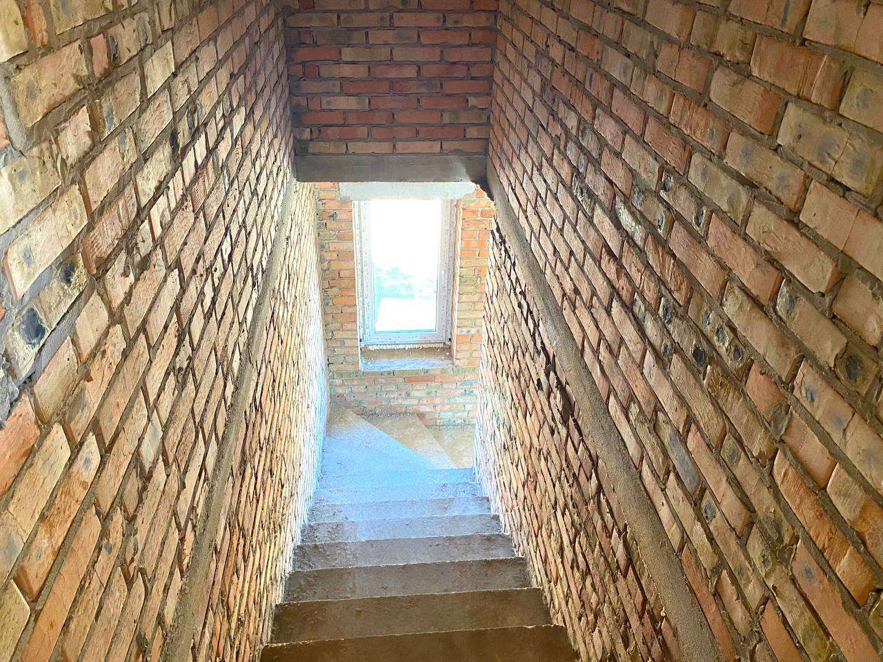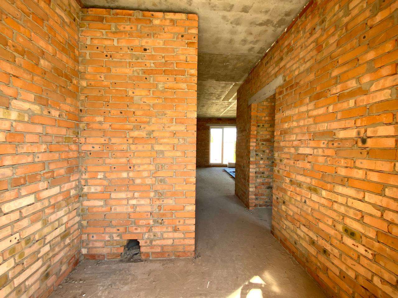 Змурований з червоної цегли.